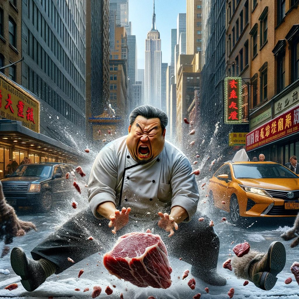 A video capturing a Chinese chef in New York preparing food before the restaurant’s opening has sparked a discussion about hygiene standards. The chef was filmed hitting frozen meat on the ground, raising concerns about the cleanliness and sanitary practices of the establishment.
